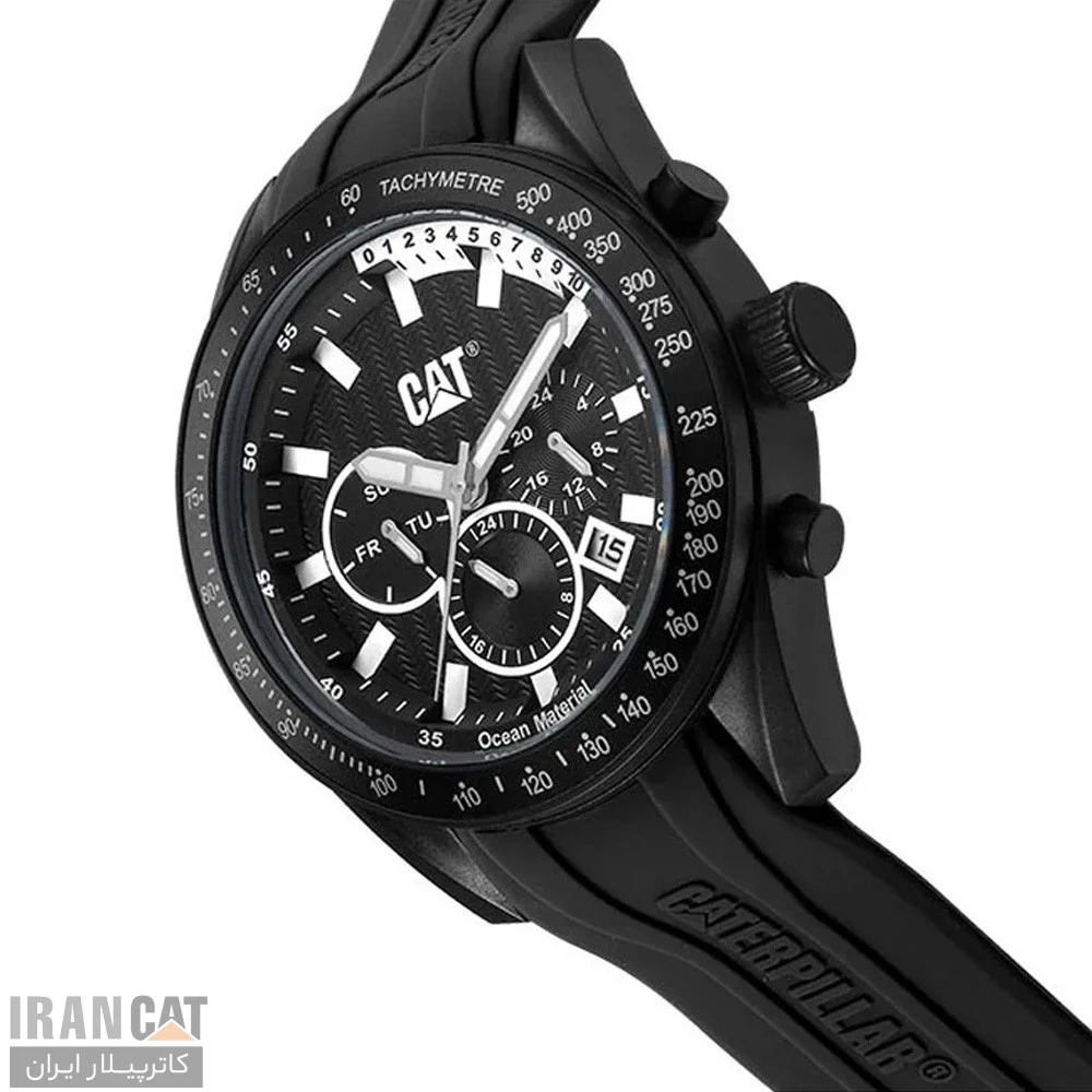 محصولی که در اینجا به شما معرفی می گردد ساعت کاترپیلار مدل Caterpillar Watch LQ.169.21.122 است.رنگ صفحه این ساعت کاترپیلار مشکی است.اندازه صفحه آن 45 میلی متر می باشد.جنس قاب این ساعت رزین است.جنس بند آن سیلیکونی است.این ساعت دو زمانه،قابلیت نمایش روزهای هفته،روزهای ماه و زه تاچی متر دارد.عقربه های شب نمای آن نیز خواندن ساعت را در تاریکی سهولت میبخشد.این ساعت کاترپیلار تا 100 متر ضد آب است.